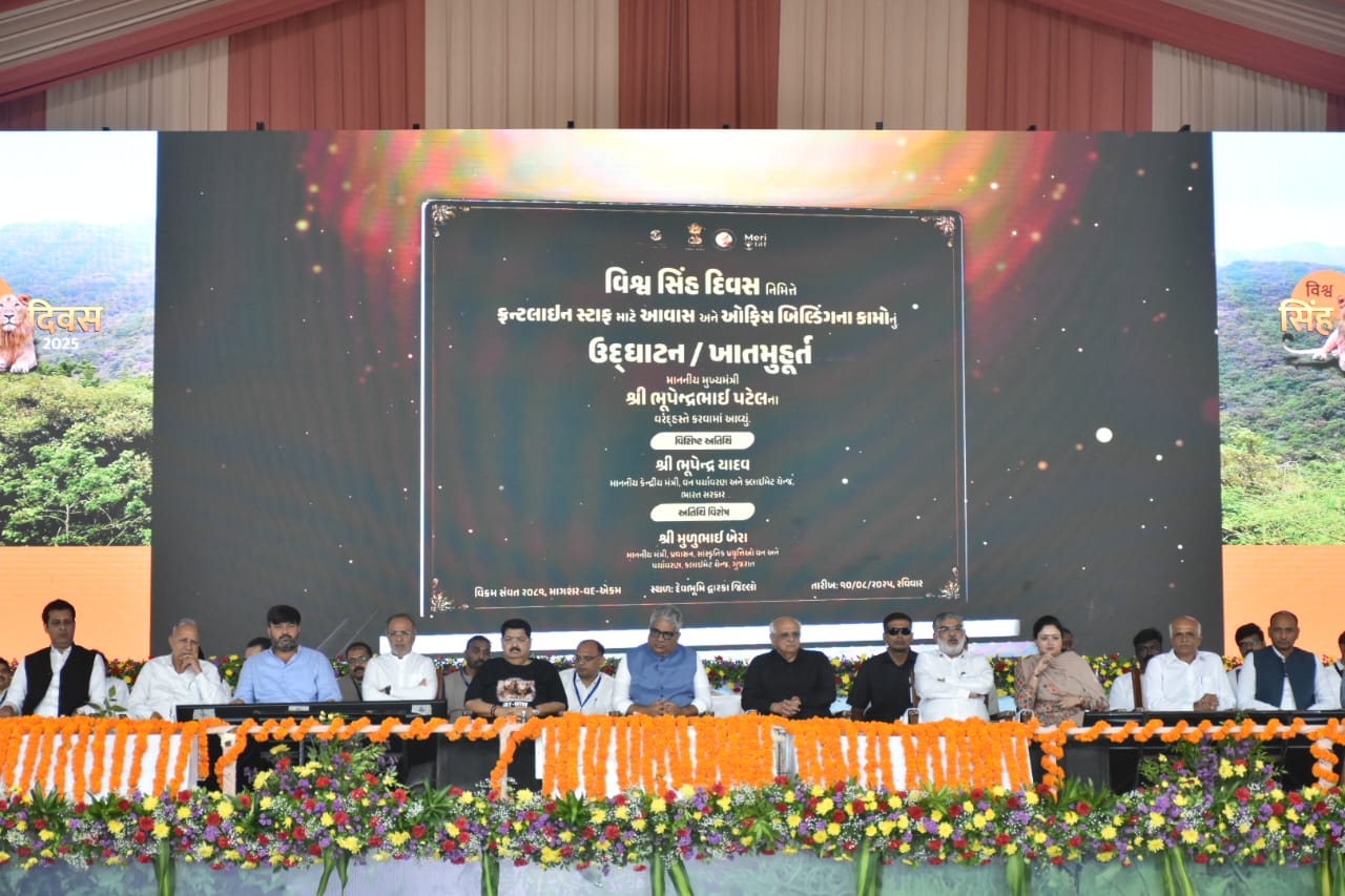 દેવભૂમિ દ્વારકાના બરડા વન્યજીવ અભયારણ્ય ખાતે મુખ્યમંત્રી શ્રી ભૂપેન્દ્રભાઈ પટેલ અને કેન્દ્રીય મંત્રી શ્રી ભૂપેન્દ્રભાઈ યાદવની ઉપસ્થિતિમાં વિશ્વ સિંહ દિવસની ગૌરવભેર ઉજવણી કરાઈ