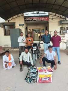 બાઈક પરથી પકડાયેલા આરોપીઓમાં ગાંધીનગરના મગોડી (વણકર વાસ)નો હર્ષીત રમેશ જાદવ (ઉ.વ.29) અને પોશીનાના અજાવાસ (રાજેટા ફળો)નો મશરૂ રામા ગમાર (ઉ.વ.40)નો સમાવેશ થાય છે. તેમની પૂછપરછના આધારે, ગાંજો આપનાર પોશીનાના અજાવાસ (રાજેટા ફળો)ના વાલા પાબુ ગમાર (ઉ.વ.50)ને પણ તેના ઘરેથી ઝડપી લેવામાં આવ્યો હતો.પોલીસે આરોપીઓ પાસેથી ગાંજા ઉપરાંત એક મોબાઈલ ફોન (કિંમત રૂ. 2,000), એક બાઈક (કિંમત રૂ. 30,000) અને રોકડા રૂ.